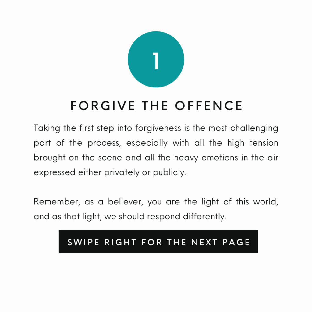Taking the first step into forgiveness is the most challenging part of the process, especially with all the high tension brought on the scene and all the heavy emotions in the air expressed either privately or publicly. Remember, as a believer, you are the light of this world, and as that light, we should respond differently.